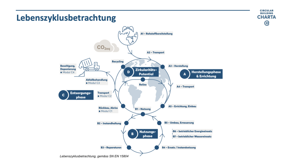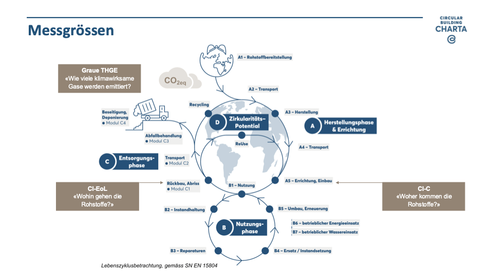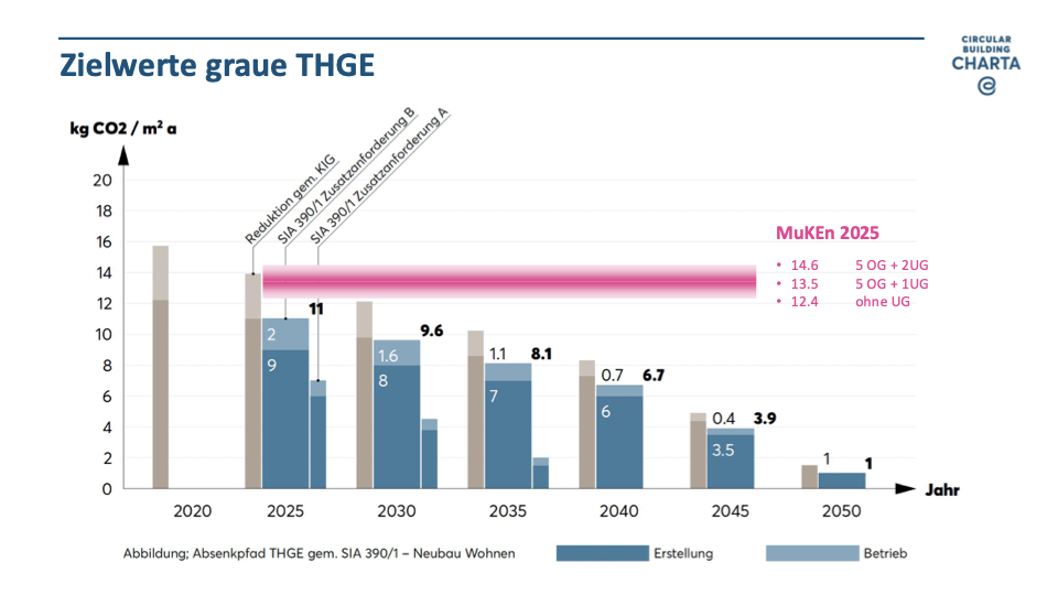 - Stefan Oeschger von JOM Architekten appellierte dafür, Zielvorgaben sowohl für die betrieblichen als auch für die grauen Treibhausgasemissionen zu setzen. Gerade bei Sanierungen wird der Fokus zu oft nur auf die Betriebsenergie gelegt – dabei übersteigt die graue Energie (Herstellungs- und Entsorgungsemissionen) die effektive Energieeinsparung im Betrieb. Dies ist nicht nur ökologisch, sondern auch ökonomisch relevant.